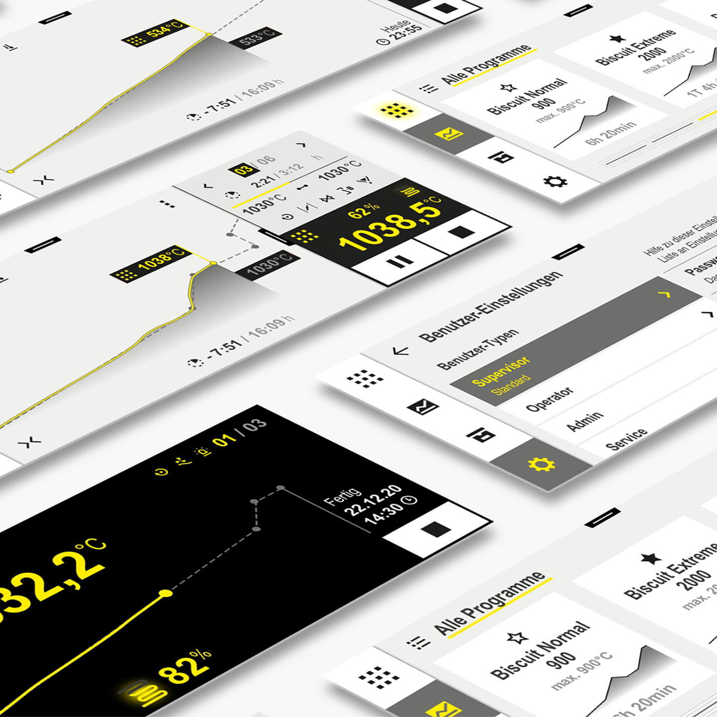 Die neue Controller Serie 500 ist Nabertherms erstes Touch-gesteuertes Bedieninterface für seine Industrieöfen. Für die vernetzten Geräte haben wir ein UI-Design-System für eine intuitive Bedienung der gesamten zukünftigen Geräte entwickelt.