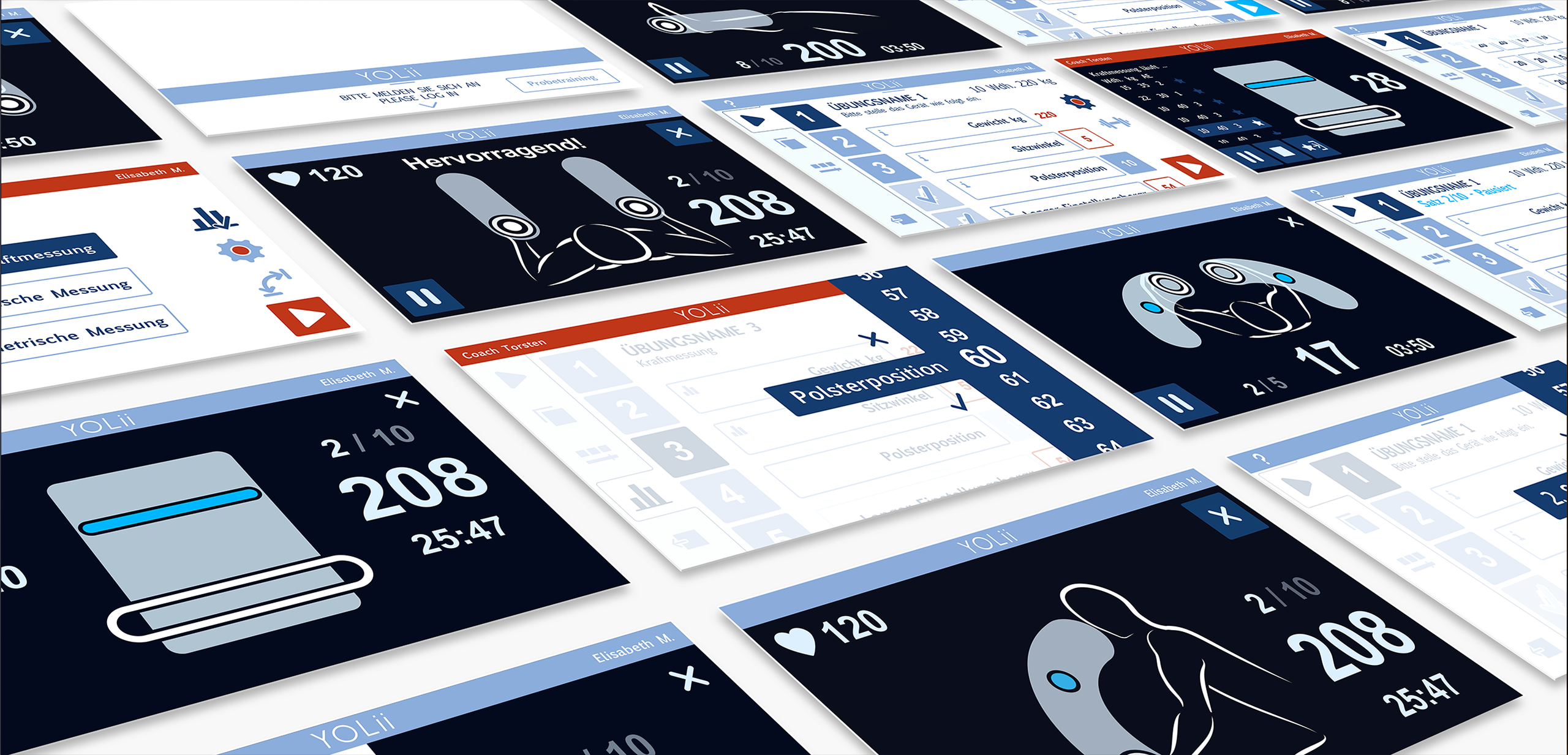 Wir haben Gamification-Elemente gepaart mit innovativen Anatomiedarstellungen in die Software eingebunden, um die Nutzer emotional anzusprechen und zu motivieren. Eine interaktive, selbsterklärende Trainingsanleitung in einem reduzierten und plakativen Interface Design macht Spaß. Insbesondere, wenn das Ganze in ein robust und wertig gestaltetes Gehäuse eingebettet wird, das sich in verschiedene Trainingsumgebungen einfügt. So wird die Benutzung von „YOLii“ zum unmittelbaren Erlebnis am Trainingsgerät.