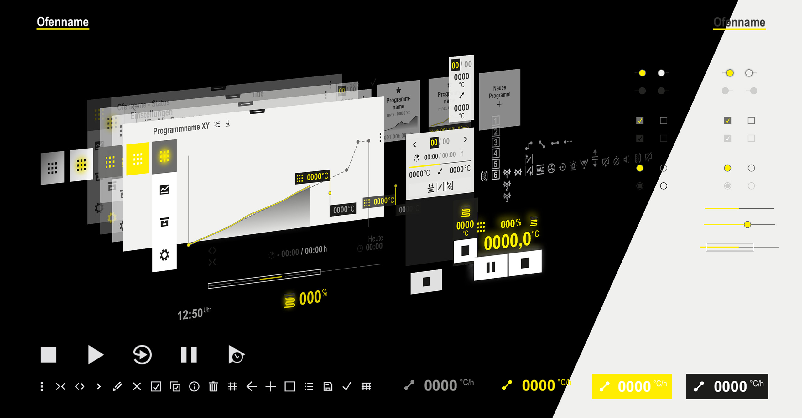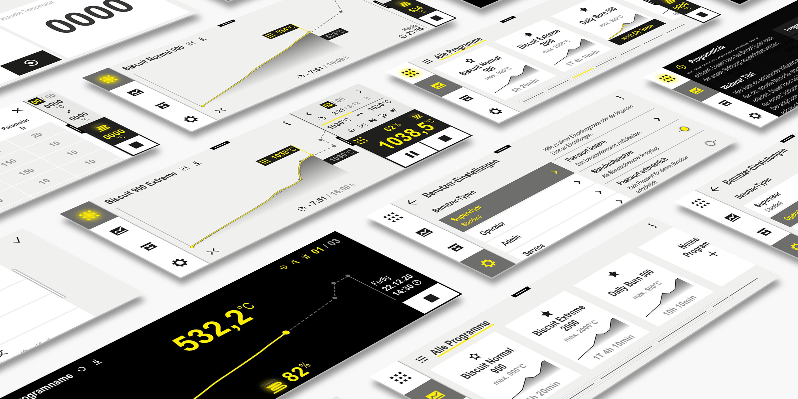Bewährte Controller-Funktionen ohne Drehknöpfe, aber genauso intuitiv – geht das denn? Ja, es geht gar nicht anders, wenn das Funktionsspektrum der modernen Geräte immer komplexer und die Gerätewelt vernetzter wird, und gleichzeitig eine sichere und intuitive Bedienung gefordert ist. Wir nahmen die Herausforderung an, eine UI Design Language im Markenkontext zu konzipieren und für die Steuerung zweier unterschiedlicher Industrieofenkategorien mit einer Vielfalt von Nutzern zu gestalten.