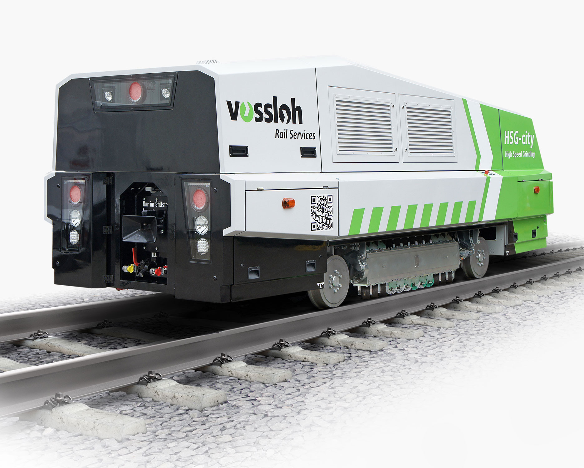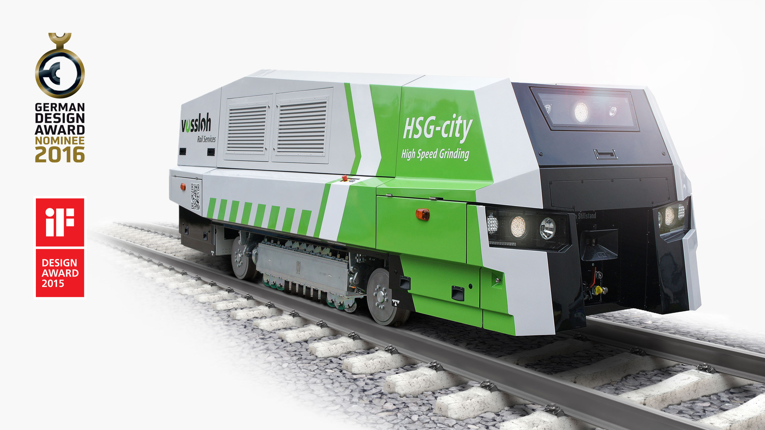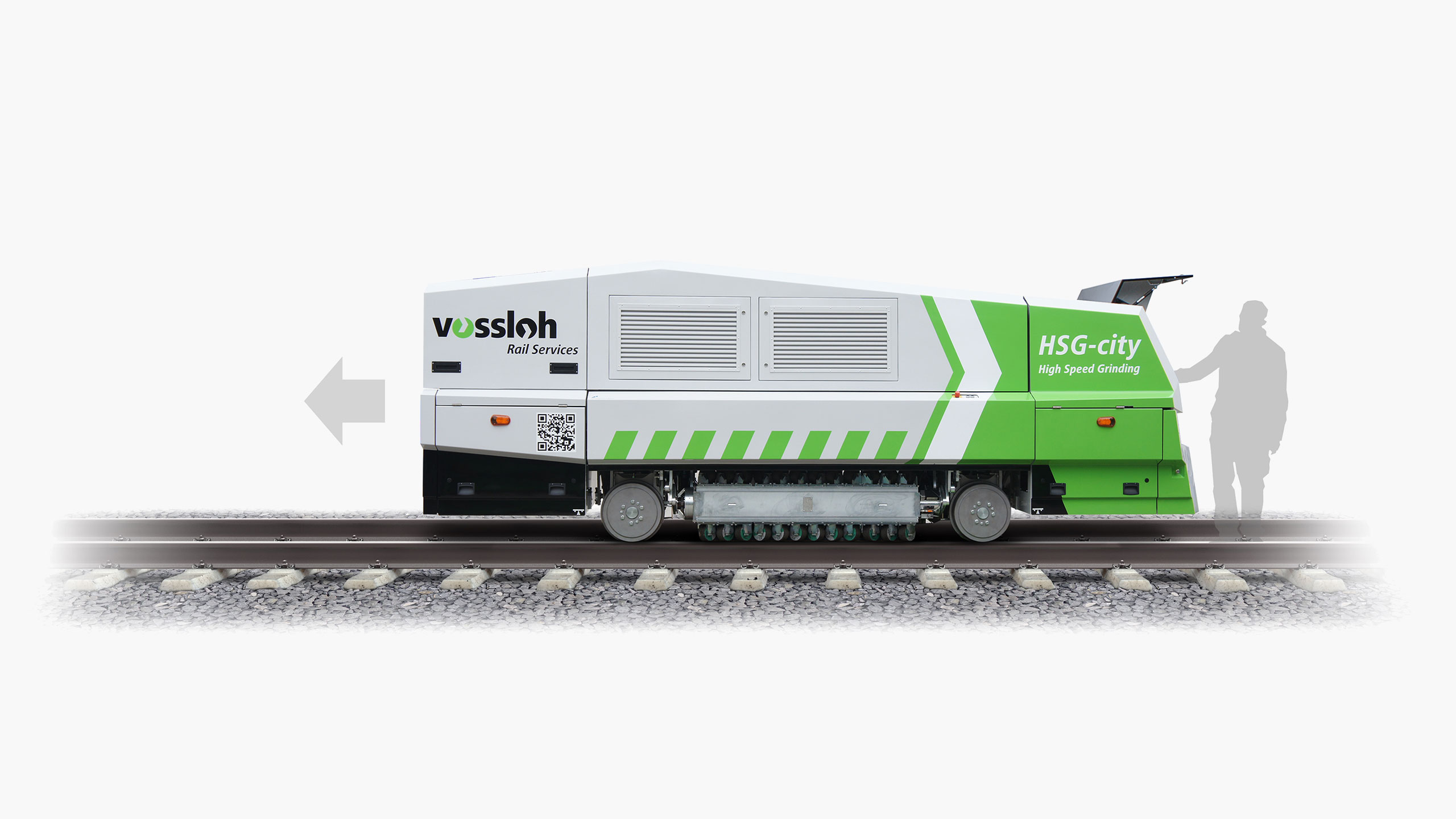Durch die Adaption der Designmerkmale des großen Bruders, dem Hochgeschwindigkeitsschleifzug HSG-2, führten wir mit dem HSG City die markentypische, kraftvoll-dynamische Formensprache von Vossloh Rail Services fort und definierten die Visual Brand Language weiter aus.