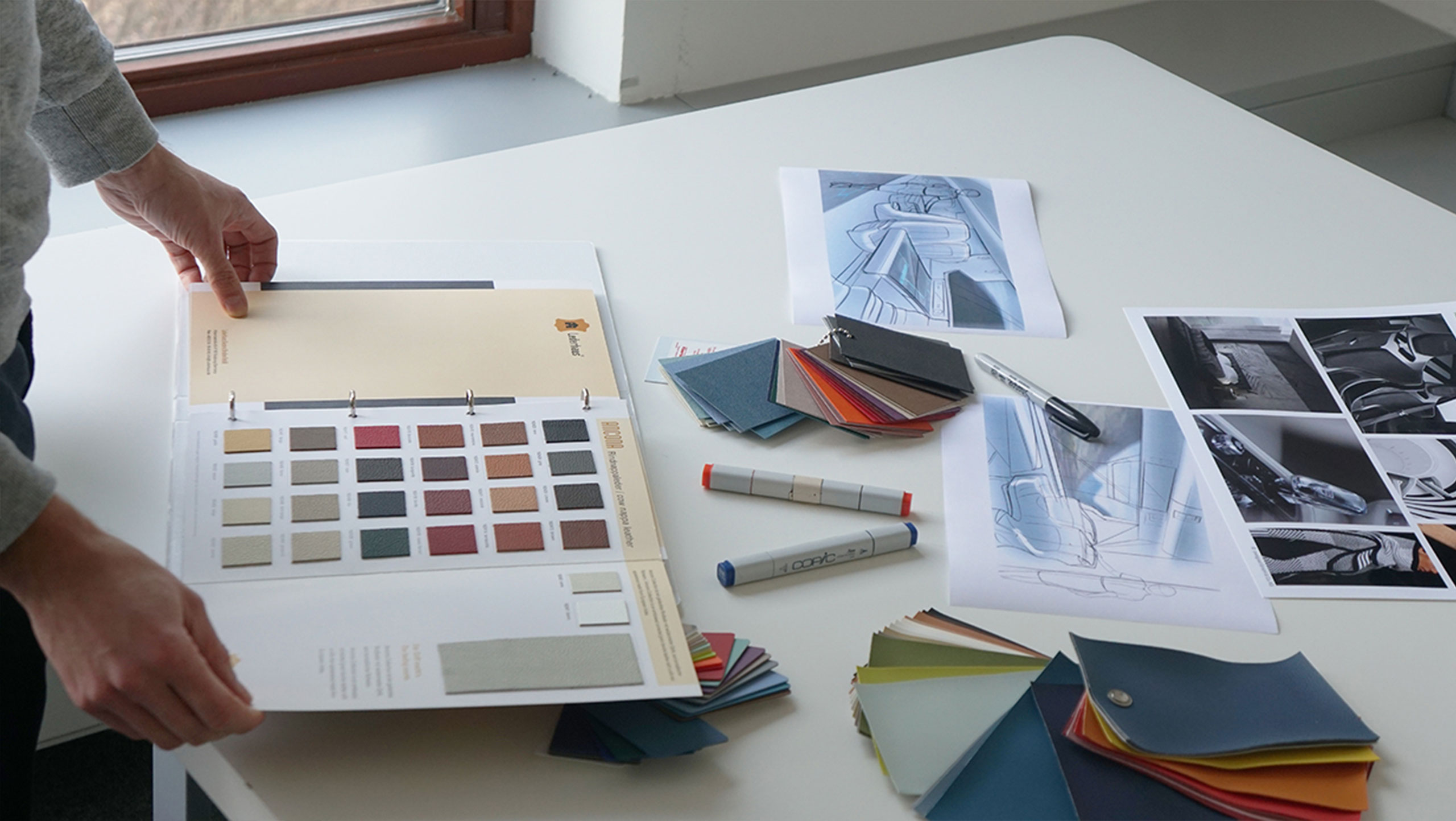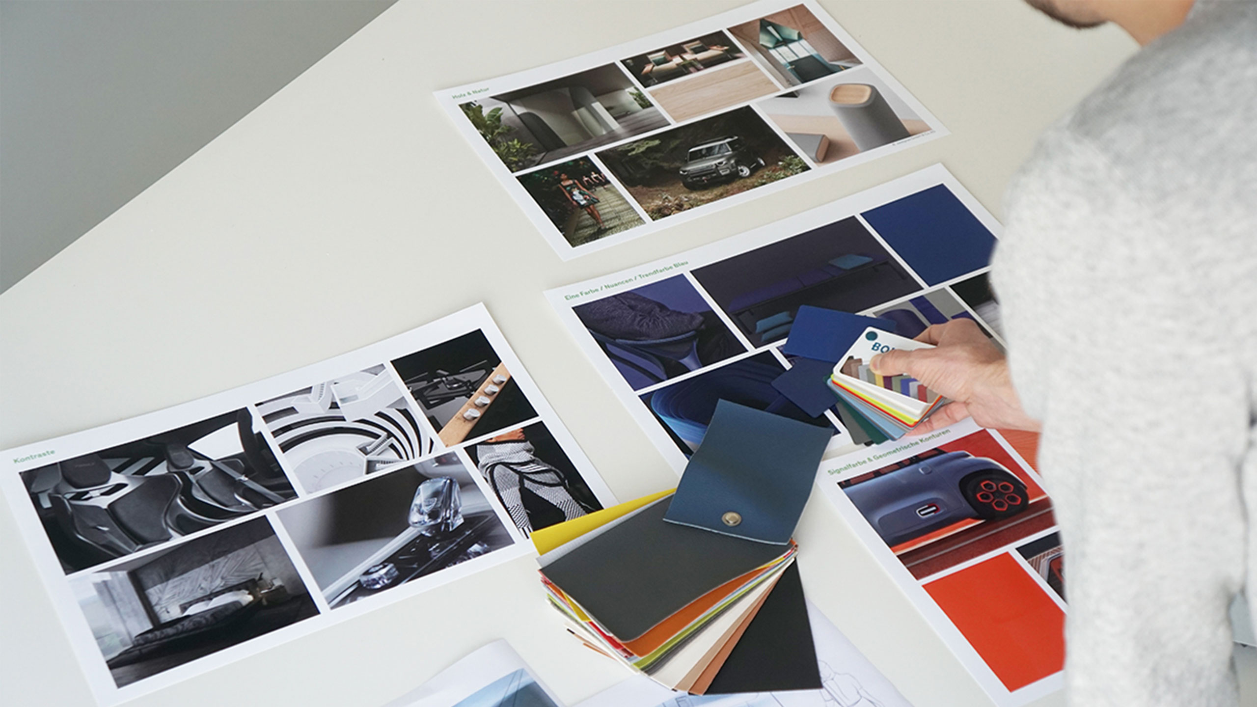 Nicht nur unsere Arbeit im Transportation Sektor erfordert die Expertise in Colour & Style. Farben, Materialien und Formen bilden in ihrem Zusammenspiel das Look & Feel von Interiors und anderen Produkten. In unserem Creative Workshop pflegen wir eine umfangreiche Material- und Farbmusterbibliothek. Dort können wir auch große Modelle bauen und Mithilfe von 1:1 Modellen und Moodboards unsere Designs an unsere Kunden kommunizieren.