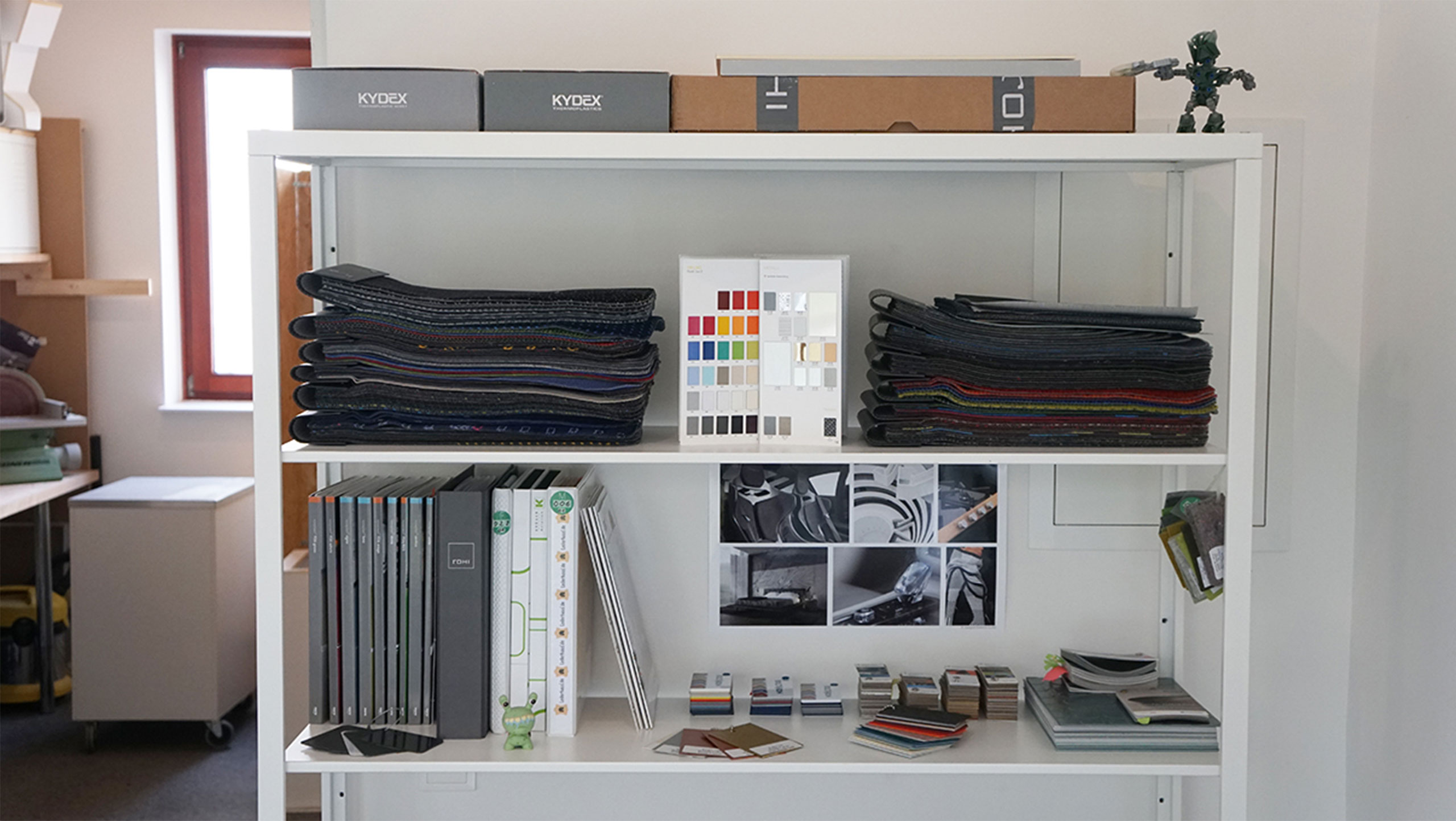 Unser Creative Workshop ist eine Mischung aus Werkstatt und Kreativraum – ein Raum für das gemeinsame Experimentieren im Designteam und mit unseren Kunden und Entwicklungspartnern. Gemeinsam überprüfen wir unsere Entwürfe direkt am Modell, diskutieren, skizzieren, wählen Muster aus, bewerten Ergonomie und Funktion und kommen auf diese Weise sehr schnell zu belastbaren Ergebnissen.