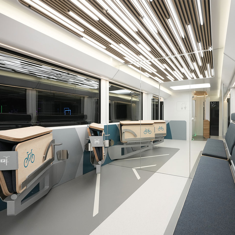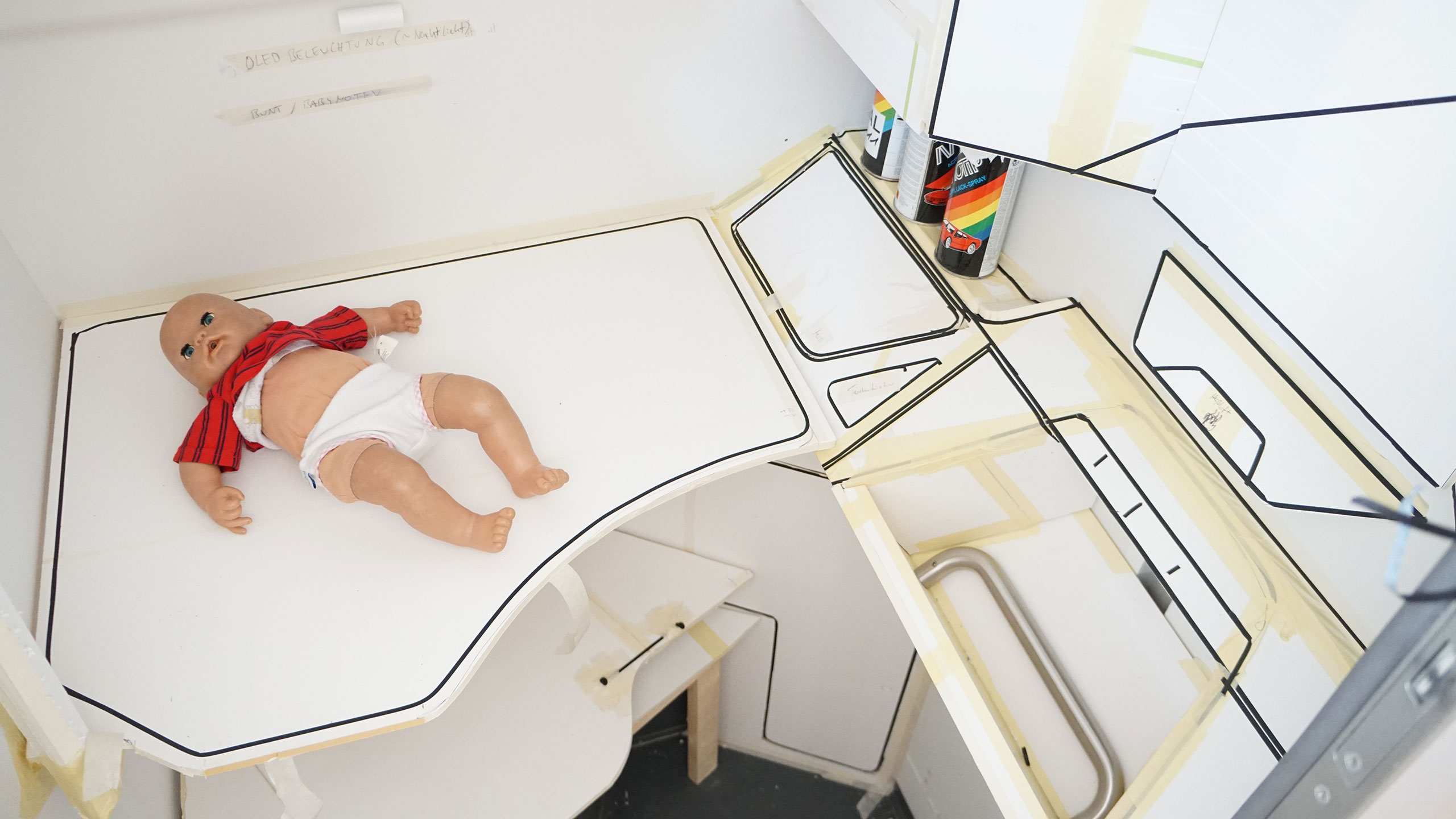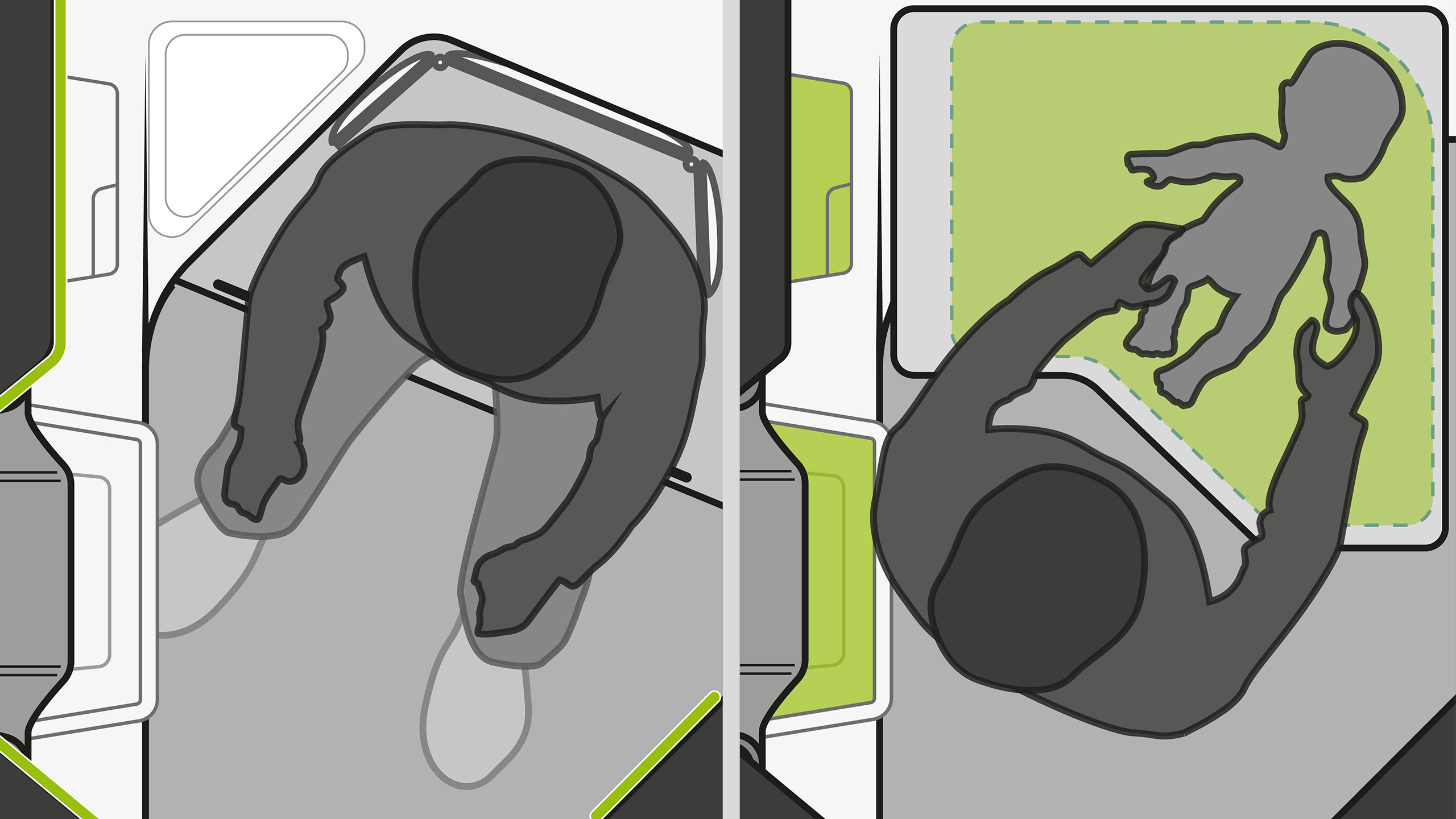 Die diagonal im Raum angeordnete Toilette, schafft Platz für den herunterklappbaren, geräumigen Wickeltisch und ermöglicht das sichere Wickeln an Bord. Über leise Sound- und sanfte Lichteffekte gelingt eine kinderfreundliche Atmosphäre, in der sich auch der kleinste Passagier wohlfühlt.